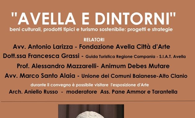 In occasione dell’attesissimo evento “Pane Ammore e Tarantella”, domenica 24 settembre ore 18.00 si svolgerà presso il Palazzo Baronale, il convegno ” Avella e dintorni”. Interverranno operatori culturali, docenti ed imprenditori locali, tra i relatori l’Avv. Antonio Larizza, il Prof. Alessandro Mazzarelli, la Dott.ssa Francesca Grassi, l’Avv. Marco Santo Alaia, a moderare l’Arch. Aniello Russo( Associazione Pane Ammore e Tarantella). Ci si confronterà sulle tematiche relative ai beni culturali, alla produzione agricola ed enogastronomica locale e al turismo sostenibile. In particolare si porrà l’attenzione sulle strategie e le progettualità.