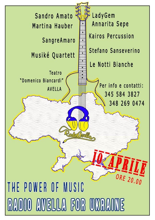 Il potere della musica in aiuto ai profughi ucraini giunti in Italia per la disperazione della guerra, un messaggio di pace lanciato dai giovani di “Radio Avella” che hanno chiamato a raccolta band e artisti locali per una serata di beneficenza che si svolgerà il prossimo 10 aprile alle ore 20.00 presso il Teatro Biancardi. Chi vuole può prenotare ai seguenti numeri  3455843827 e 3482690474 e rilasciare i proprio contributo che sarà devoluto in beneficienza a sostegno degli ucraini.