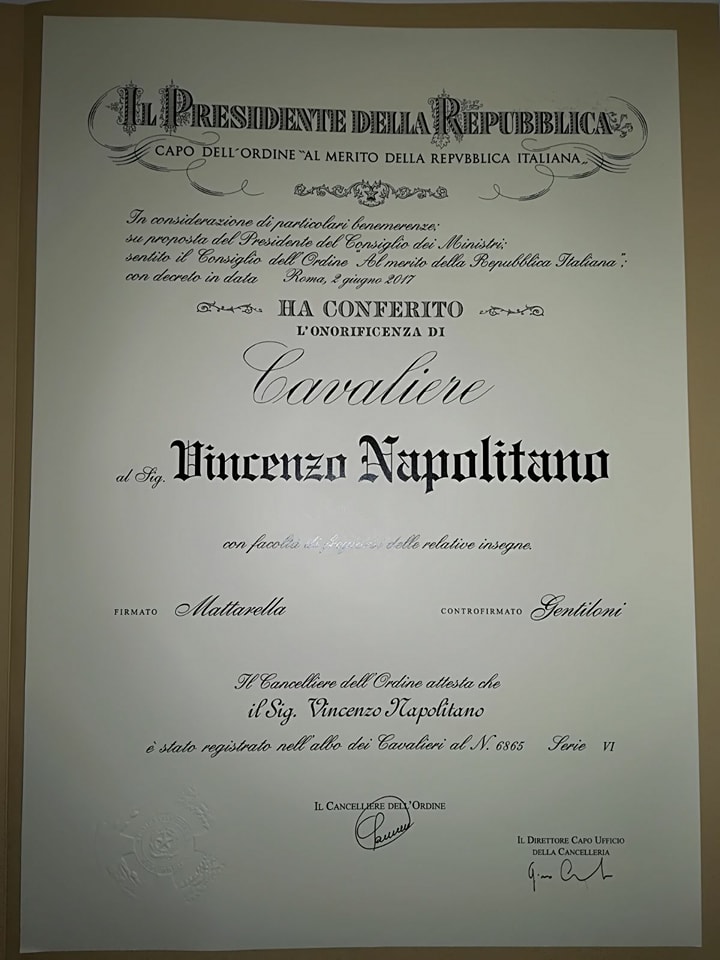 Classe 1937,nato ad Ariano Irpino ma avellano doc, ha trascorso la sua infanzia a ridosso della grotta di San Michele come di recente riportato in una suo promemoria consegnato alla nostra redazione e che riporta tutte le attività realizzate negli anni. Il Cavaliere Vincenzo Napolitano si è sempre contraddistinto per il suo senso civico e di responsabilità spesso riconosciuto dai vari sindaci, amministratori di turno e istituzioni. Si è sempre prestato per il servizio sociale anche prima della sua presidenza alla sezione reduci e combattenti difatti il periodico nazionale “Voce della Rotaia e ferrovie dello stato”, di cui era dipendente, lo hanno insignito con attestati e medaglie d’oro.