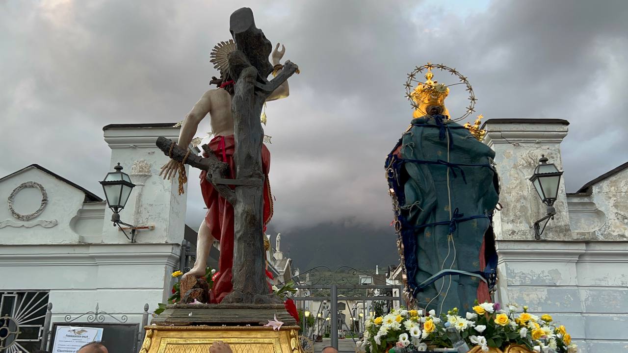 La scelta di far sostare la processione in questo luogo sacro è stata accolta con grande commozione dai tanti fedeli presenti. Durante la sosta al cimitero, numerosi partecipanti hanno rivolto una preghiera ai loro cari defunti, creando un momento di raccoglimento e riflessione collettiva. Il passaggio della processione davanti al cimitero ha simboleggiato un ponte spirituale tra i vivi e i defunti, rinsaldando i legami della comunità con la tradizione e la memoria.