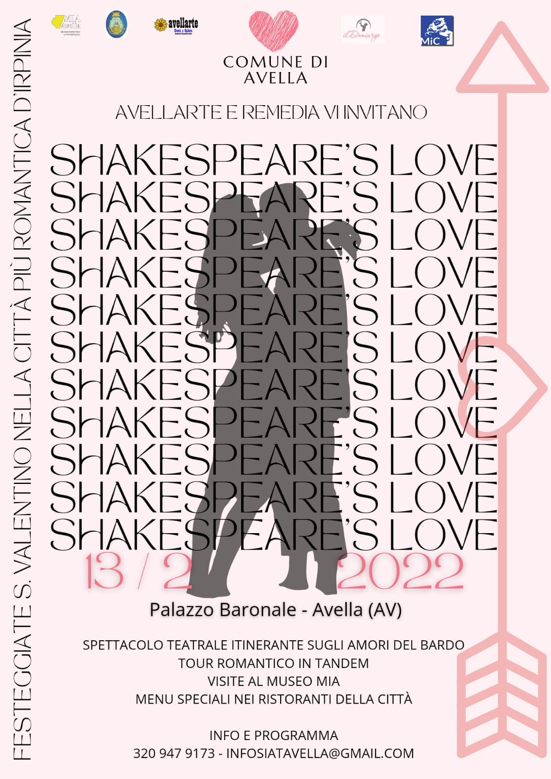 Scattarsi una foto, darsi un bacio, amarsi per un istante e per sempre. Nell’incantevole giardino del Palazzo Baronale l’arco dell’amore, installato dall’amministrazione comunale, consentirà agli innamorati di scattare una foto romantica proiettandoli verso San Valentino. La foto può essere pubblica su facebook e instagram con hashtag #amareavella taggando Avellarte con la propria dedica. Non si tratta dell’unica iniziativa in vista di San Valentino,domenica 13 febbraio a partire dalle ore 18, nella splendida corte del Palazzo Baronale illuminato un evento dedicato agli innamorati e non solo. Lo spettacolo itinerante in cui sarà raccontato, attraverso sonetti e scene tratte dalle principali commedie e tragedie di Shakespeare, la concezione dell’amore tra il serio e il faceto, l’ironia e la poesia. Lo spettacolo, prodotto da Il Demiurgo e distribuito da Remedia. è interpretato da Chiara Vitiello e Franco Nappi, con la regia e la drammaturgia di Francescoantonio Nappi. Costumi e Scene Filomena Mazzocca. Per info e prenotazioni +393209479173 [email protected] o presso l’ufficio turistico al Palazzo Baronale. Si potrà abbinare allo spettacolo la visita a museo archeologico ed Immersivo MIA