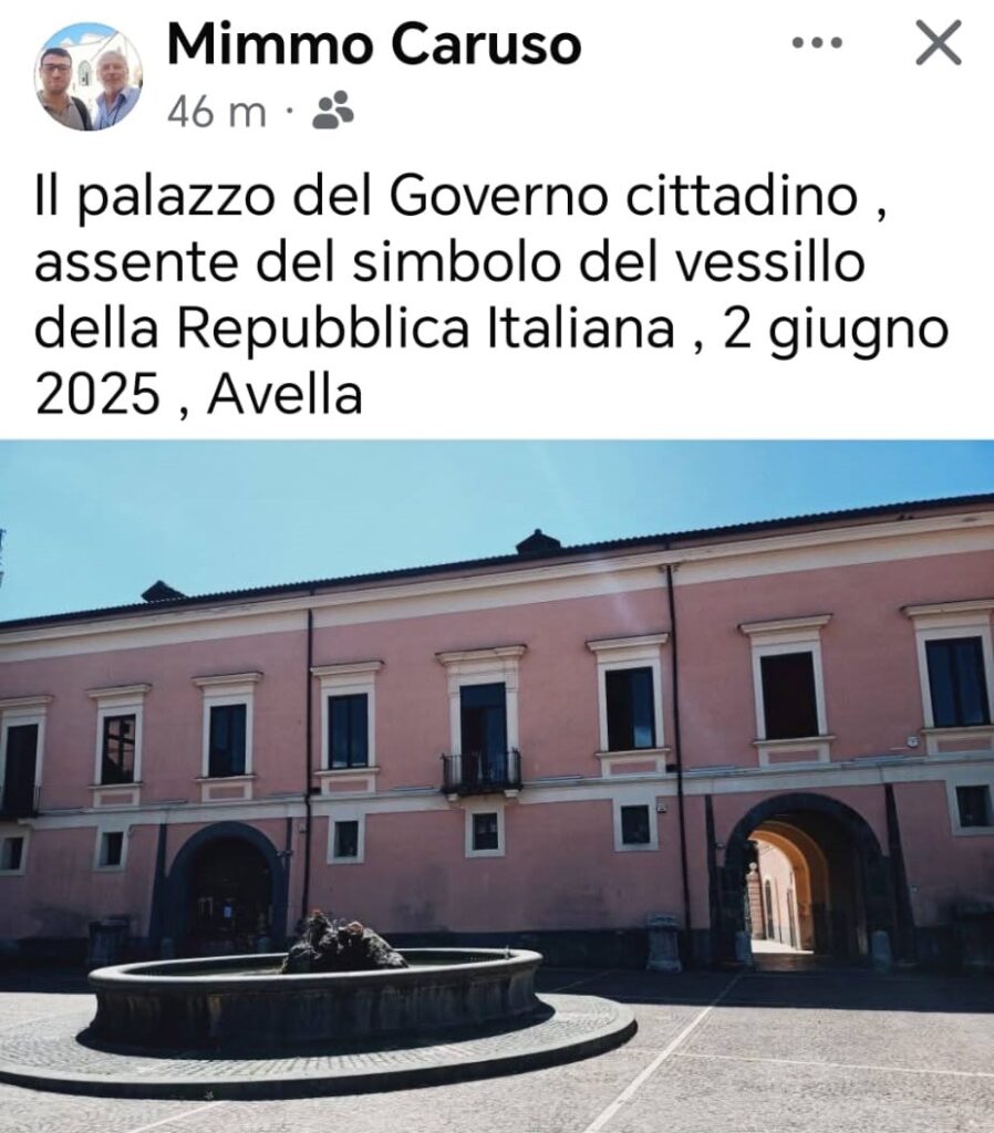 A far discutere è stata in particolare la mancanza dell’esposizione del vessillo tricolore sul palazzo municipale, proprio in una giornata simbolica per la storia e i valori della Repubblica Italiana. Tra i post che stanno circolando su Facebook, quello di Mimmo Caruso ha raccolto numerose reazioni: “Il palazzo del Governo cittadino, assente del simbolo del vessillo della Repubblica Italiana, 2 giugno 2025, Avella” — ha scritto, corredando il messaggio con una foto della sede comunale priva della bandiera.