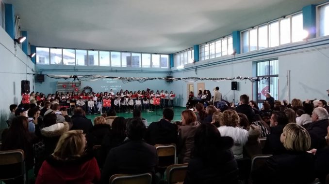 Si è svolto presso la palestra del plesso scolastico in Via De Sanctis lo spettacolo natalizio organizzato dagli alunni e dai docenti della scuola media Mons. Guerriero. I ragazzi si sono esibiti in canti e balli,tra i temi trattati, oltre il Natale, anche l’amore e la pace. Uno spettacolo natalizio davvero sorprendente e ben preparato, i ragazzi hanno ricevuto tante lodi e applausi da parte dei presenti, tra cui la Preside Dott.ssa Ambrosino che ha ringraziato tutti per l’impegno speso. Spazio anche alla solidarietà con un mercatino allestito in una delle classi dell’istituto, occupato anche l’atrio per l’esposizione e la vendita di lavoretti e presepi,tutto il ricavato sarà devoluto in beneficenza. Non solo solidarietà ma anche tanta cultura. Gli alunni della II A, III A e III D dell’istituto hanno pubblicato tre libri: “In viaggio verso la seconda”, “Nell’universo adolescenziale” e “Racconti e Poesie”. A curare le tre pubblicazioni la Prof.ssa Francesca Maria Maietta che nella prefazione ha sottolineato che i racconti scritti narrano di mondi dove nulla e superfluo e tutto acquista un significato nella geniale logica della scrittura. Una scrittura fortemente legata al mondo dell’immaginario, dove tutto diventa possibile e attuabile e dove i racconti propongono una sequela di obiettivi tra cui scoprire i messaggi e i valori per riflettere sui ragazzi, sui loro comportamenti positivi, per orientarsi nei propri percorsi di vita andando oltre il libro, seguendo il corso delle curiosità suscitate dalla lettura.