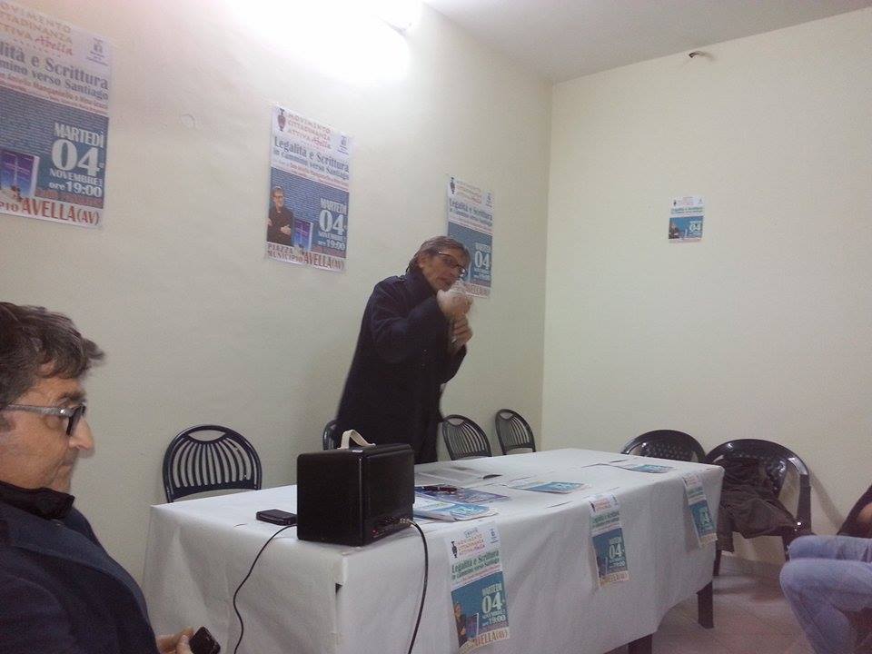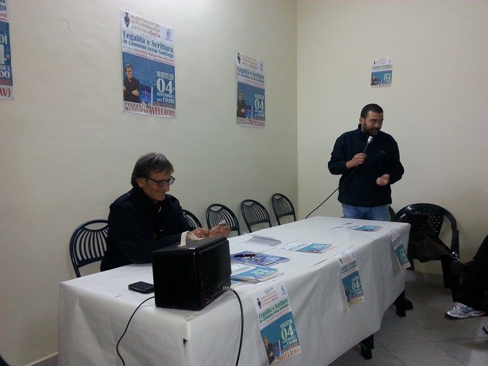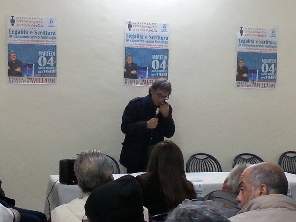 L’Associazione Movimento Cittadinanza Attiva Abella, nell’ambito dell’attività culturale che la contraddistingue e di cui si è fatta da tempo promotrice, ha presentato ieri, martedì 4 novembre, presso la saletta del Caffè Pasquino, il libro “Legalità e Scrittura: in cammino verso Santiago” scritto a quattro mani dal giornalista-editore Mino Grassi e da don Aniello Manganiello, il noto sacerdote anticamorra da sempre impegnato nel sociale e fondatore dell’associazione Ultimi per la Legalità. Un bel momento di riflessione con una fitta partecipazione della cittadinanza che, particolarmente interessata, ha posto domande a Don Aniello. I pellegrini durante il cammino (10-21 giugno 2013) hanno affrontato diverse tematiche sociali come la famiglia, la fede, la Chiesa, il potere, il matrimonio e tanto altro: le immagini, le discussioni, i report ed i dialoghi sono riproposti in questo libro non senza provocazioni, spunti ed attività formative per ragazzi ed educatori. Con l’interessante prefazione curata da mons. Giancarlo Maria Bregantini, arcivescovo di Campobasso e grazie all’indispensabile collaborazione della psicologa dell’Educazione Feldia Loperfido, l’ultimo lavoro letterario di don Aniello non ha la pretesa di essere un manuale formativo ma vuole soltanto essere un fedele resoconto di un’esperienza di vita condivisa essenzialmente da un gruppo di giovani alla ricerca di se stessi che hanno saputo confrontarsi su questioni di fondamentale importanza: questo libro è semplicemente uno spaccato della nuova generazione vista dall’interno e raccontata, senza pregiudizi, alla società. Questi appuntamenti dal grande appeal culturale, come chiesto dai presenti, dovrebbero diventare un appuntamento fisso per Avella, e forse, presto, con i giusti presupposti, lo diventeranno.