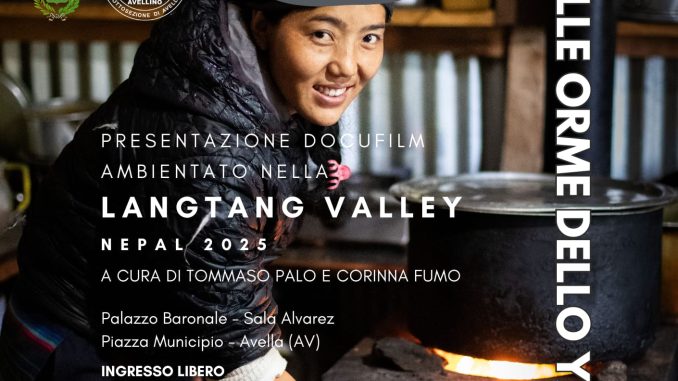 Serata culturale per la presentazione del Docufilm intitolato “Sulle orme dello yak – Langtang Valley Nepal 2025” a cura di Tommaso Palo e Corinna Fumo. 11 febbraio 2026 ore 20:00 – Palazzo Baronale – Sala Alvarez Piazza Municipio – Avella (AV) – Ingresso libero.