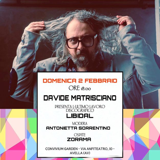 Domenica 2 febbraio alle ore 18:00, ad Avella (AV) presso il Convivium Garden (Via Anfiteatro, 10), verrà presentato “Libidal”, il nuovo lavoro discografico del cantautore e musicista Davide Matrisciano.