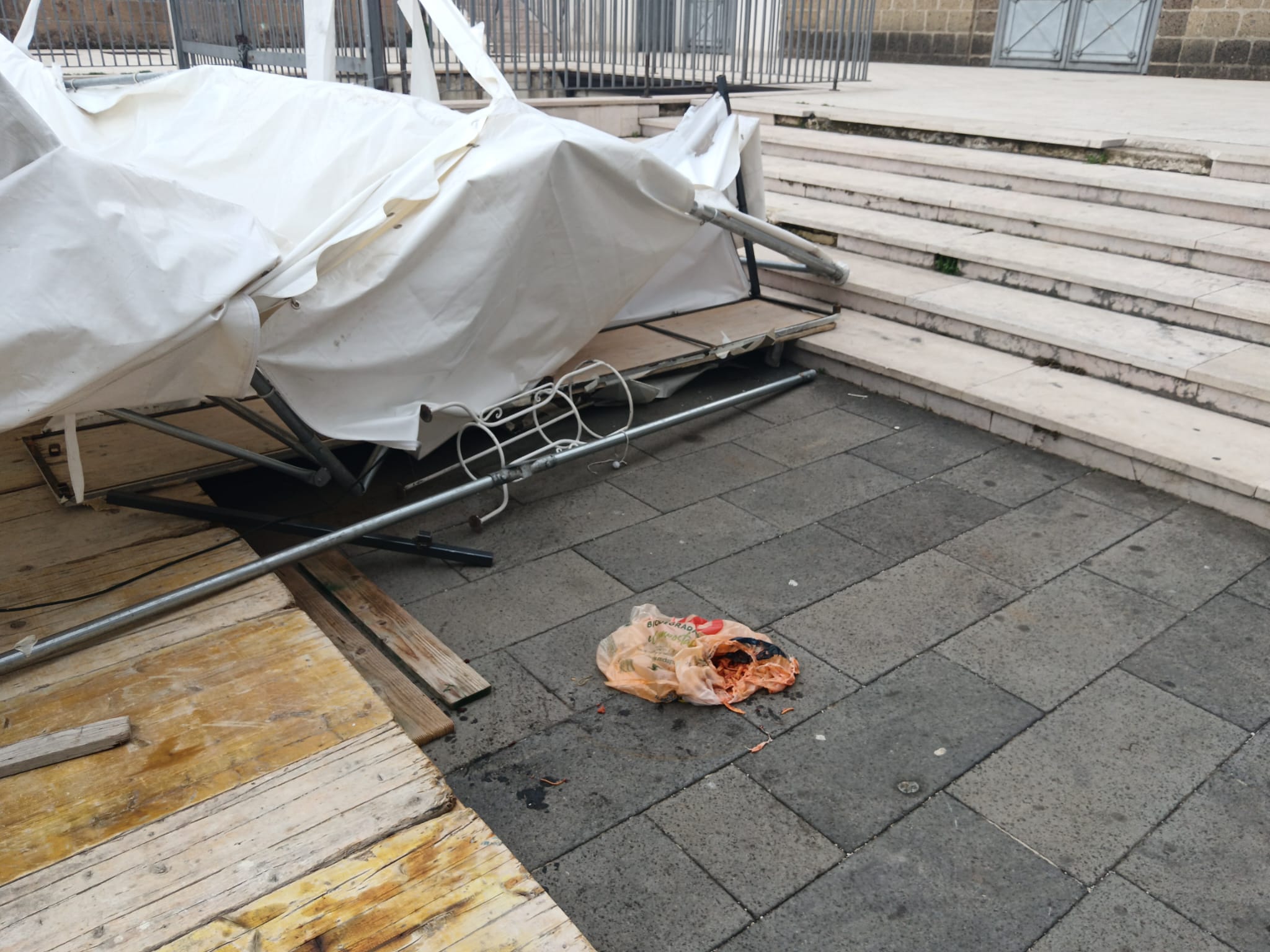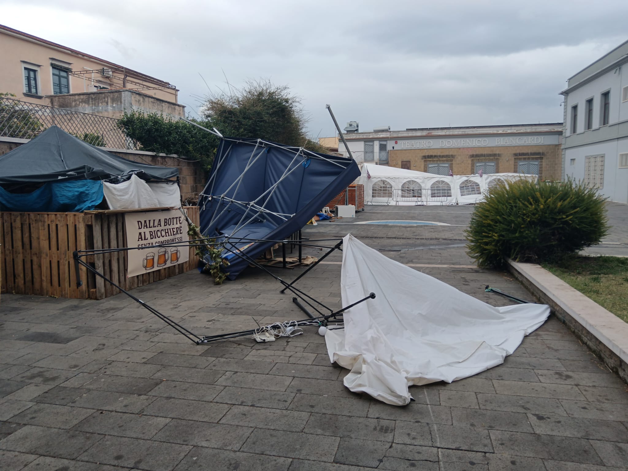Fortunatamente non si registrano feriti o danni a persone, ma occorre ripristinare l’area e mettere in sicurezza le strutture. Le operazioni di sistemazione dovrebbero iniziare appena possibile, così da garantire il regolare svolgimento degli eventi previsti per il prossimo fine settimana.