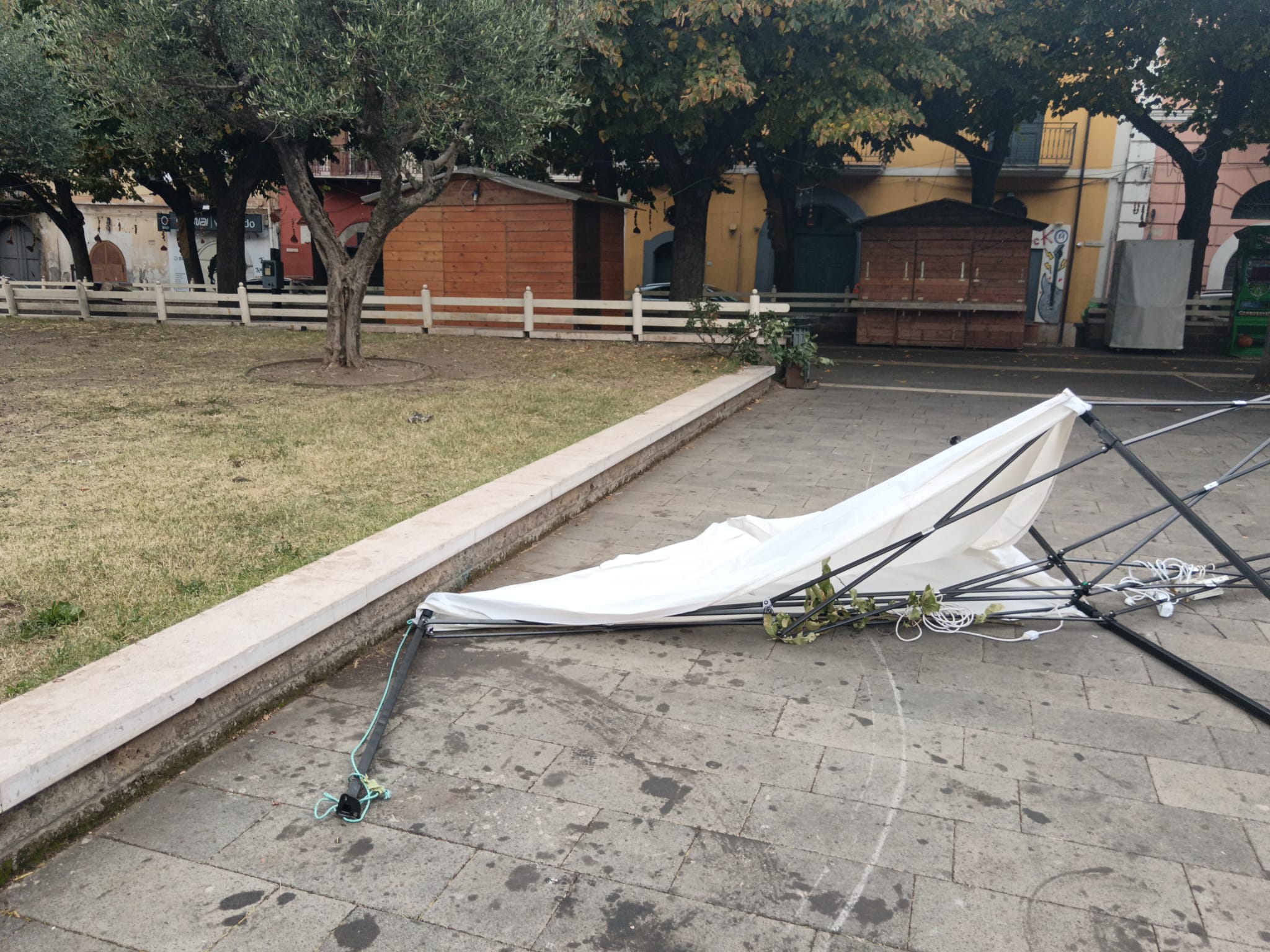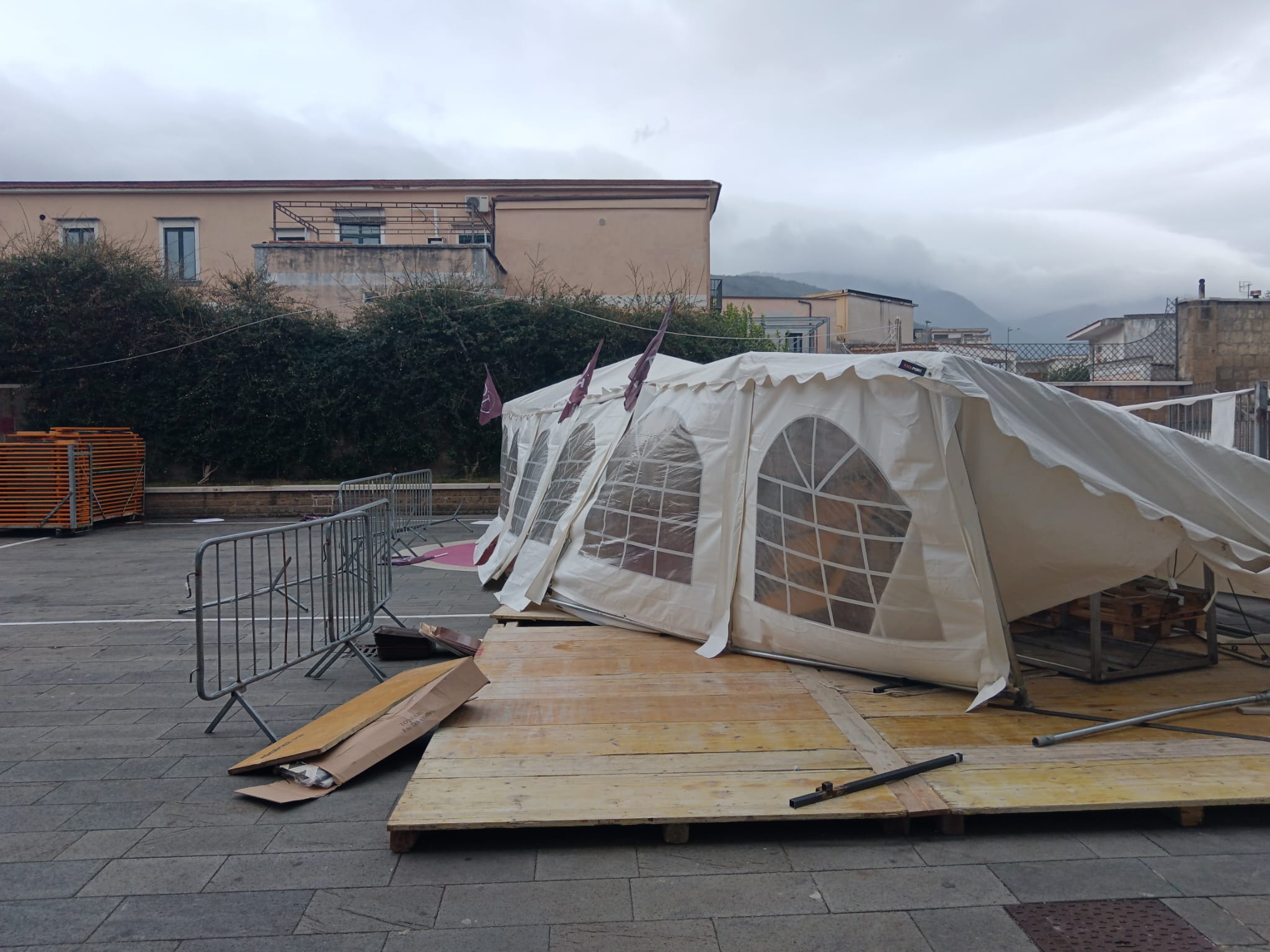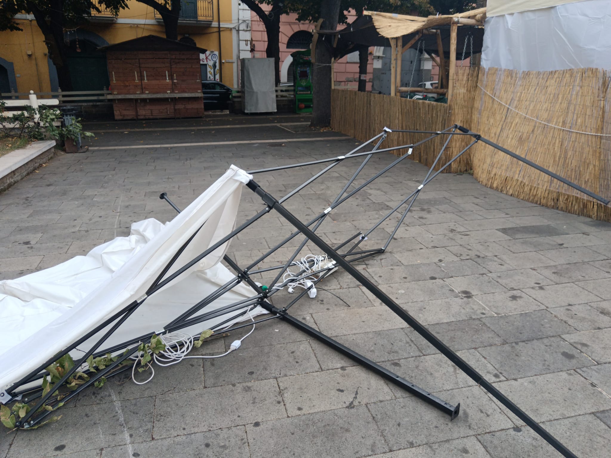 Il maltempo che nella notte ha interessato l’area baianese ha creato diversi disagi anche ad Avella, dove le forti raffiche di vento hanno danneggiato alcune strutture allestite in Piazza Convento per la Sagra della Castagna e della Nocciola giunta quest’anno alla XII edizione.