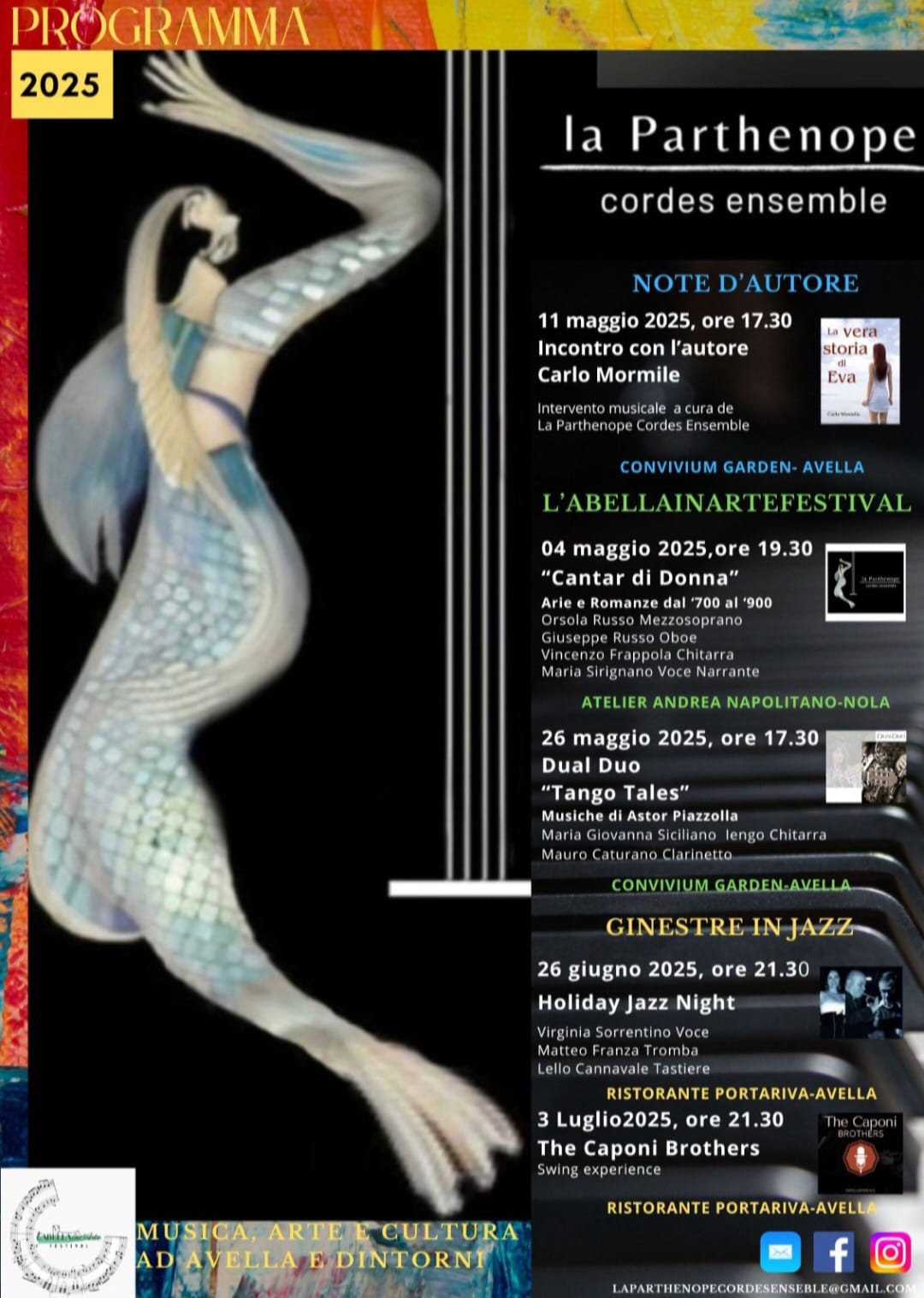 Prosegue la Rassegna Concertistica promossa ed organizzata dall’ associazione La Parthenope Cordes Ensemble di Avella. Ricchissimo il programma che si svolgerà fino a giugno e che toccherà stili ed epoche diverse per rispondere alle esigenze di un pubblico variegato, ma attento ed amante dell’arte, della cultura e della musica. A fare da scenario saranno luoghi di indiscussa bellezza come l’Anfiteatro Romano e il Fusaro con le sue preziosità paesaggistiche. Dunque, appuntamenti in musica da non perdere. Da circa un anno, La Parthenope Cordes Ensemble si presenta come driver di creatività, in un’ottica in cui i processi culturali diventano promotori della crescita innovativa del territorio di Avella, già città d’arte, all’insegna della musica colta, dell’arte e della bellezza. Info in locandina.