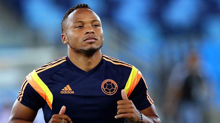 epa04276446 Colombian national soccer team player Juan Zuniga warms up during his team's training session at the Arena Pantanal in Cuiaba, Brazil 23 June 2014. Colombia will face Japan in the FIFA World Cup 2014 group C preliminary round match in Cuiaba on 24 June 2014. (RESTRICTIONS APPLY: Editorial Use Only, not used in association with any commercial entity - Images must not be used in any form of alert service or push service of any kind including via mobile alert services, downloads to mobile devices or MMS messaging - Images must appear as still images and must not emulate match action video footage - No alteration is made to, and no text or image is superimposed over, any published image which: (a) intentionally obscures or removes a sponsor identification image; or (b) adds or overlays the commercial identification of any third party which is not officially associated with the FIFA World Cup) EPA/JOSE COELHO EDITORIAL USE ONLY