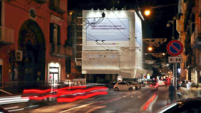 A Napoli, proseguono i restauri “scenografici” di edifici storici, ad opera del Gruppo IPAS che, da 50 anni, opera a livello nazionale nel campo nel settore OOH, DOOH e arredo urbano. Dopo il debutto nella centralissima piazza Garibaldi, che ha visto la facciata di un palazzo in ristrutturazione interamente ricoperta da un telo pvc free print, della superficie di circa 500 mq, si è passati ora al centro storico della città di Napoli. Per la precisione, in Piazza Sette Settembre, ad angolo con via Toledo. È qui, che si trova lo storico Palazzo Doria D’Angri, la cui copertura è partita il 1° ottobre, con due teli big size illuminati. Uno splendido edificio settecentesco, ricco di storia, divenuto particolarmente famoso, grazie all’annuncio dell’annessione del Regno delle Due Sicilie a quello d’Italia, proclamato nel 1860 da Giuseppe Garibaldi, da uno dei balconi che danno sulla piazza, il 7 settembre, data che poi diede il nome allo slargo.