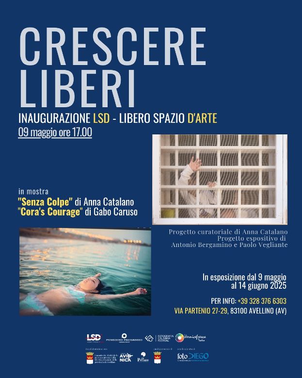 Le mostre costruiscono la trama narrativa di una rassegna, “Crescere liberi”, che guarda al tema dei diritti a partire dal mondo dei bambini, consegnando lezioni importanti a quello degli adulti. “Crescere liberi” è un progetto realizzato da LSD in collaborazione con Pensiero Paesaggio, Fotografia Calabria Festival, Vernicefresca Teatro, grazie al contributo del Garante dei diritti delle persone private della libertà personale della provincia di Avellino, con la partecipazione del circolo ARCI Avionica e dell’associazione Polluce e il supporto di Foto Diego. L’evento è patrocinato dalla Provincia di Avellino