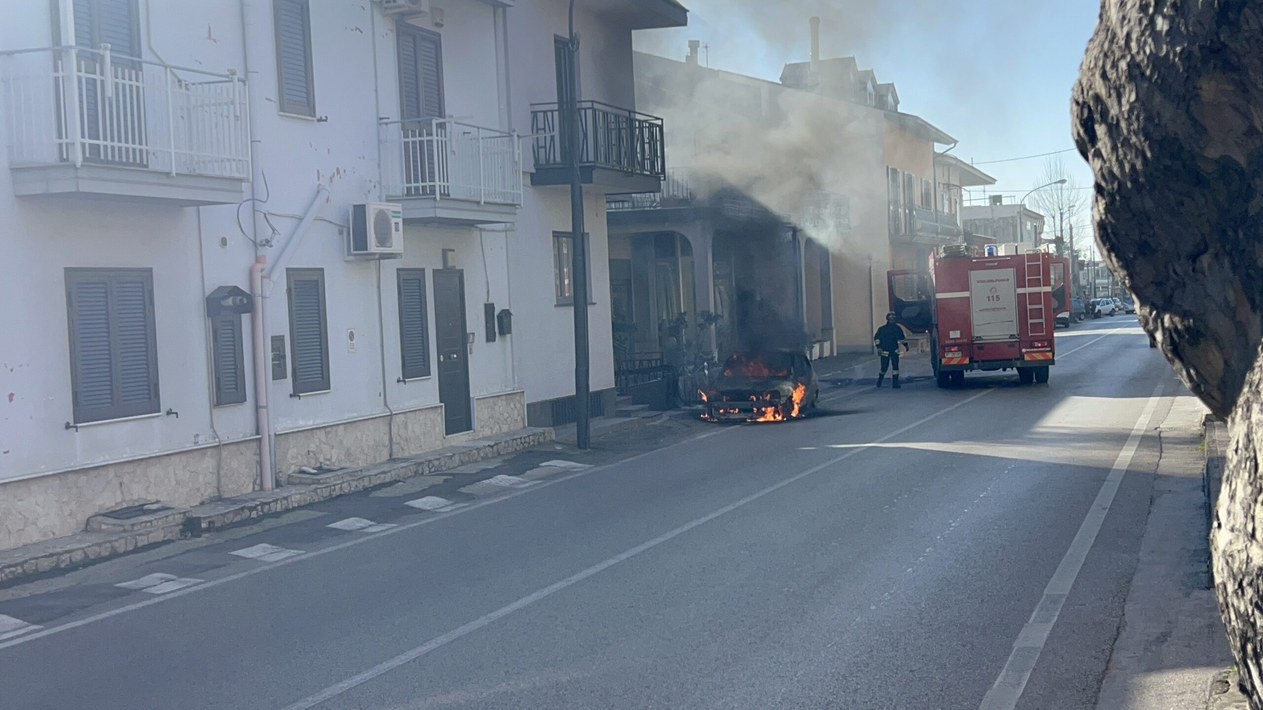 Baiano (AV). Momenti di tensione nel pomeriggio di oggi, lunedì 3 marzo 2025, sulla SS7bis Nazionale delle Puglie, nel tratto che attraversa Baiano. Un’Opel Corsa ha improvvisamente preso fuoco mentre era in marcia, costringendo il conducente a fermarsi ⊇d’urgenza. L’automobilista è riuscito a mettersi subito in sicurezza, abbandonando il veicolo sulla destra della carreggiata, in direzione Mugnano del Cardinale.