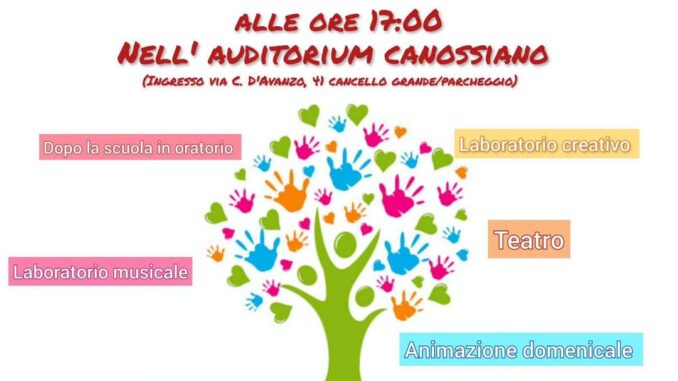 Sabato 16 settembre sarà possibile conoscere l’’Oratorio Canossiano perché ci sarà il primo Open Day, alle 17, presso l’Istituto delle madri canossiane. L’ evento è rivolto all’intera comunità mandamentale: adulti, giovani e bambini, che potranno conoscere da vicino il progetto educativo dell’oratorio. (L.Carullo)