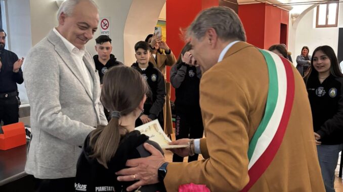 Il Sindaco, Dott. Vincenzo Biancardi, ha consegnato una targa al Dirigente Scolastico, prof. Andrea Amoroso, e al Corpo Docente, riconoscendo l’impegno e la passione con cui hanno guidato gli studenti in questa esperienza unica. Ai ragazzi che hanno partecipato all’evento è stata invece riservata la consegna di pergamene, simbolo di riconoscimento per il loro talento e l’impegno profuso.