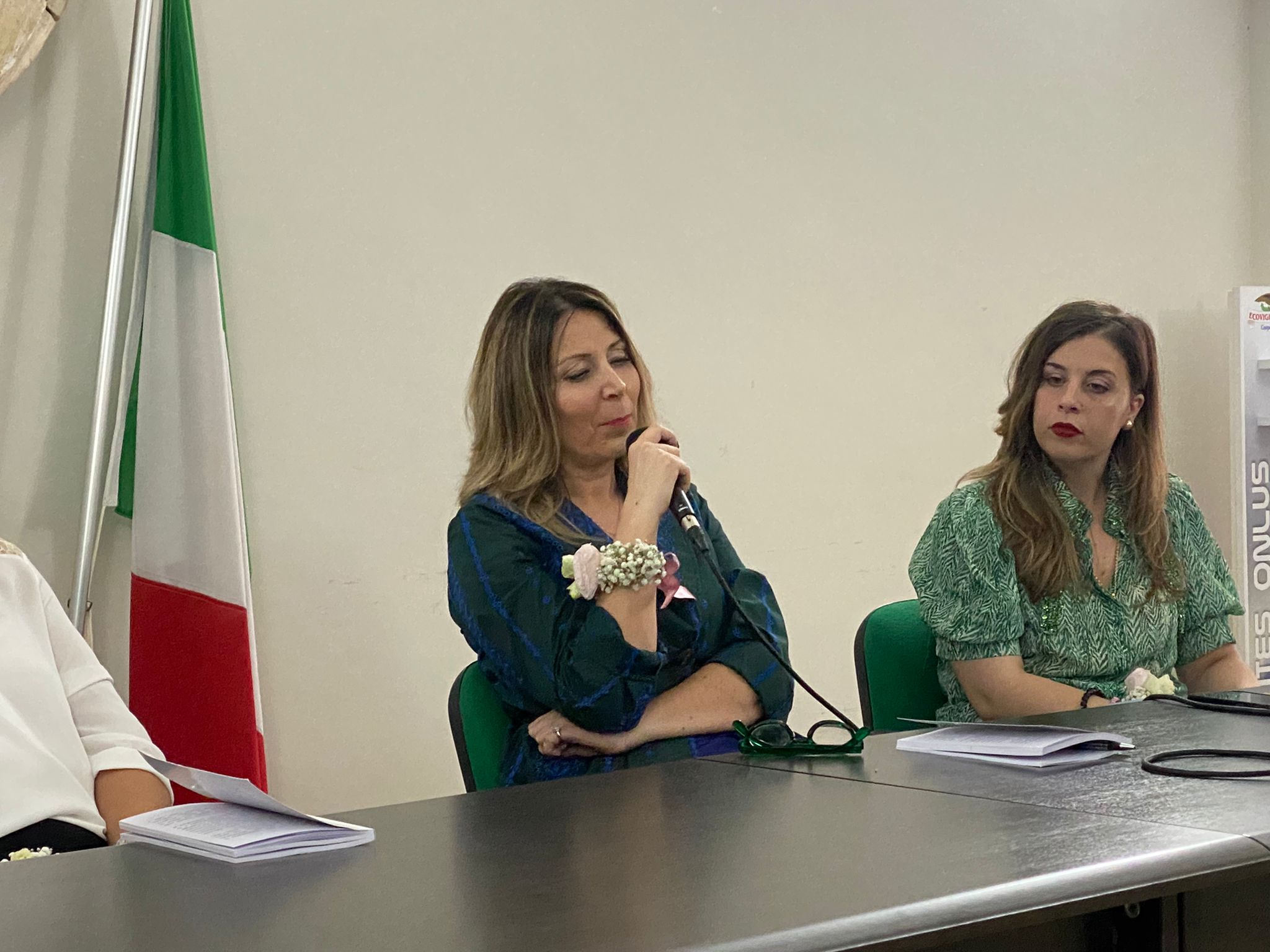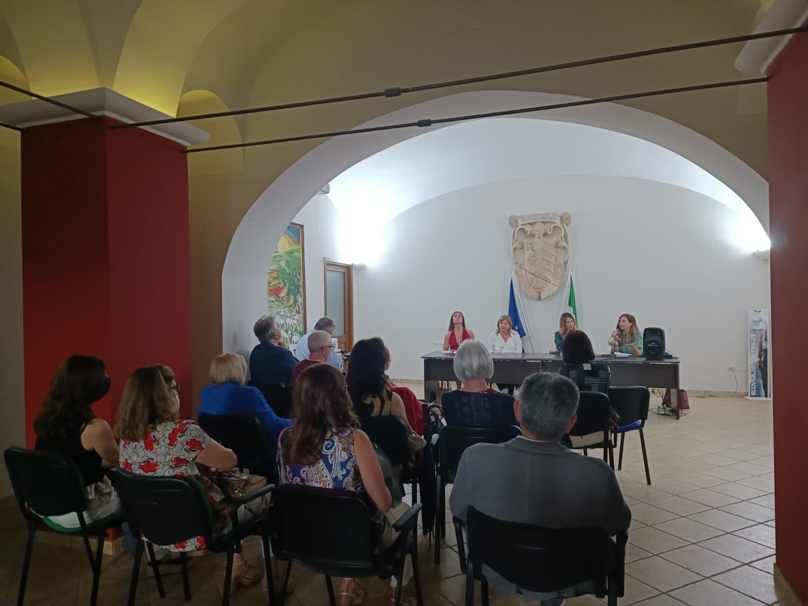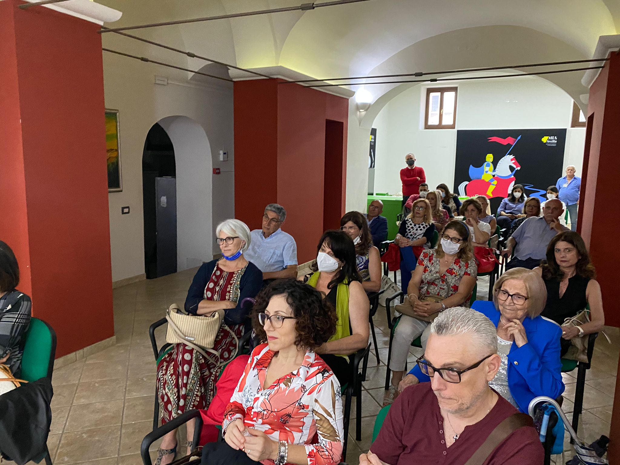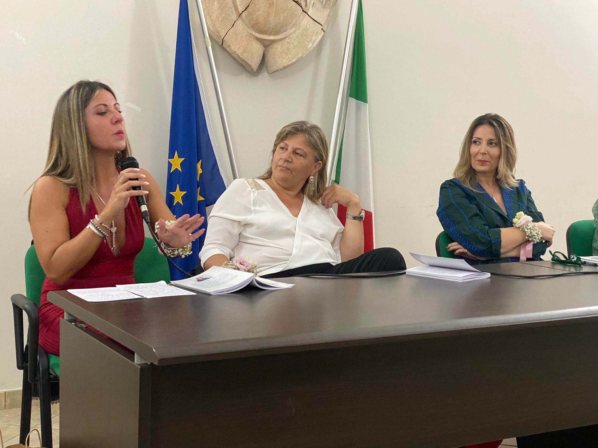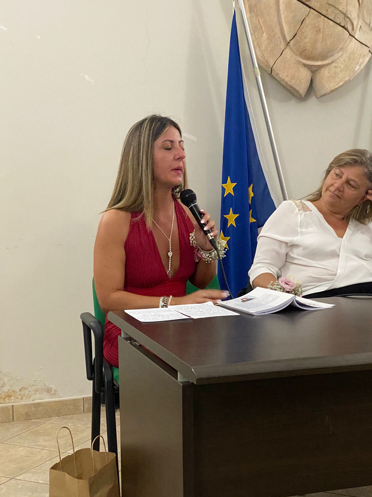 La presentazione che si doveva tenere in giardino a causa della pioggia si è svolta nella Sala Alvarez del palazzo Baronale con la partecipazione di un buon pubblico. Al tavolo insieme all’autrice anche  Francesca Grassi (scrittrice), Nunzia Coppola (docente- avvocato) e la giornalista Martina Giugliano che ha moderato l’evento.