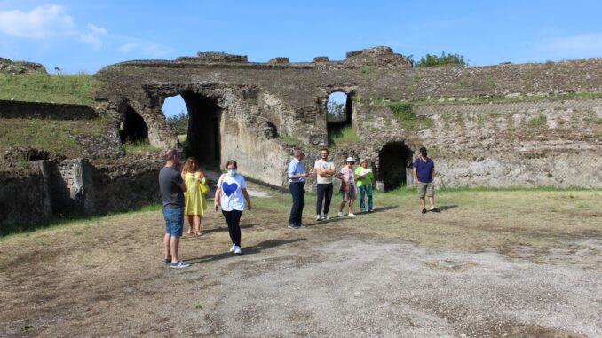 Alcuni membri del Centro 66 dell’Arciconfraternita Universale di Santa Filomena, che ha sede a Nocera Superiore, sono ospiti, in questi giorni, del Santuario di Santa Filomena, proprio per onorare la Santina in occasione della sua festa. Stamattina alcuni membri del Centro 66 e del Centro 0 (che ha sede nel Santuario) hanno partecipato ad una visita guidata ai monumenti avellani, organizzata dall’avv. Alessandro Siniscalchi, attraverso il Gruppo Archeologico Avellano “Amedeo Maiuri.”. I turisti sono rimasti affascinati dall’anfiteatro, dalle tombe romane e dal museo archeologico. La responsabile del Centro 66, l’avv. Raffaella Ferrentino ha dichiarato: “Sono davvero contenta di aver accettato l’invito degli amici avvocati Lucia Carullo e Alessandro Siniscalchi, non conoscevo Avella e ne ho potuto apprezzare le bellezze grazie anche alla guida del sig. Andrea Siniscalchi, competente e chiaro nell’esposizione”. Avella dunque oggi ha conquistato nuovi estimatori che hanno promesso di ritornare in occasione dei prossimi eventi enogastronomici. (L. Carullo)