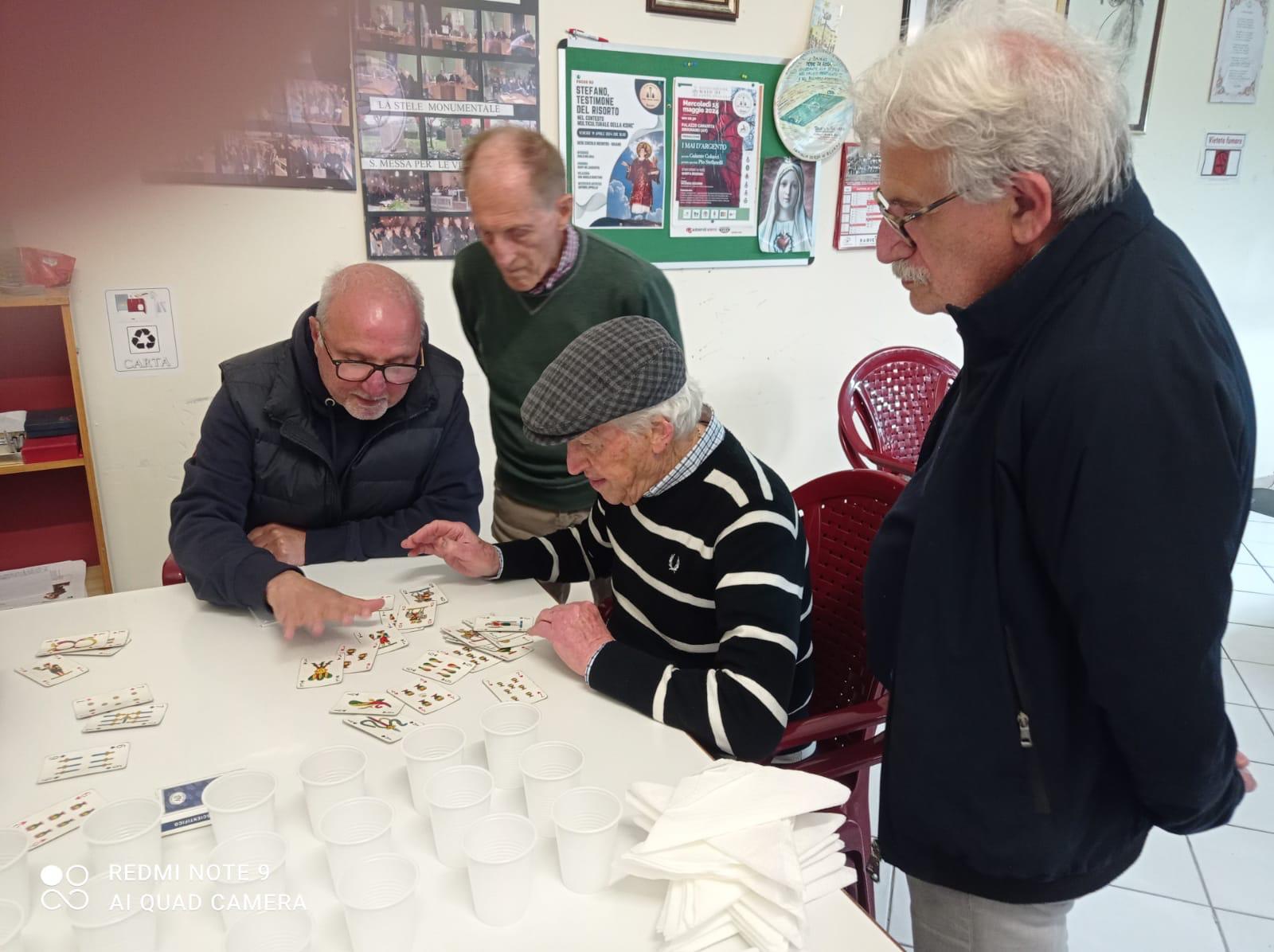 Le foto raccontano la partita di finale per il Torneodi scopa, edizione aprile ’25, con protagonisti StefanoLitto e Carlo Melissa, giovani, nonni, l’uno 86enne, l’altro 63.enne, il primo pensionato, già funzionario- Enel, l’altro, funzionario dell’amministrazione della Federico II, da sempre impegnato nel sociale e iniziative assistenziali, con tanta passione per il teatro trasmessa al figlio Antonio.