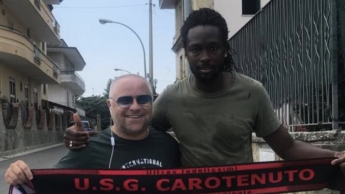 L’attaccante ventisettenne Moustapha Diallo vestirà la maglia del Carotenuto, ripescato in Promozione. Il guineano ha militato nel Cicciano, bella vetrina grazie ai suoi gol. Non fortunato nelle ultime due stagioni, prima col Troina in Serie D per via di un serio infortunio e poi con l’Afro Napoli United in Eccellenza dove è stato a disposizione fino a dicembre. Ora l’obiettivo è riscattarsi con la squadra di Mugnano del Cardinale. Nella foto, tratta da Campania Football, con il Presidente Angelo Gagliardi.