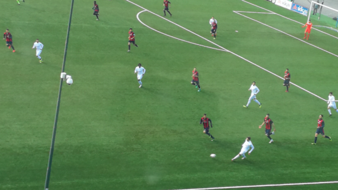 Turnover in casa Avellino, Dondoni ce la fa, duo di centrali difensivi con Dionisi, entrambi under gli esterni bassi, Betti e Parisi. A centrocampo rifiatano Da Dalt e Di Paolantonio, in campo Gerbaudo e Matute. Carbonelli rileva Tribuzzi, Pepe esordisce da titolare, tridente offensivo con De Vena e Alfageme. Anche il Flaminia cambia rispetto all’ultimo match contro l’Anagni, l’ex Abate in avanti, compagno di reparto Genchi, alle spalle Lazzarini. Gnignera, Cangi, D’Orsi e Carta formano la linea a 4 difensiva, Seck, D. Buono e Mattia in mediana. Un pò di ritardo rispetto all’orario canonico, il via alle 14,35. Avellino in completo bianco, Flaminia in divisa rossoblu. Pomeriggio ventilato al Partenio Lombardi. Si vede poco nelle prime battute, solo un tiro velleitario di Gerbaudo che si spegne sul fondo. Errori in disimpegno, da una respinta della difesa avellinese ne scaturisce un tiro sballato di Mattia. Bisogna attendere il 23′ per un’occasione degna di nota, Parisi effettua un cross in area avversaria, De Vena di testa, spalle alla porta, per poco non punisce l’uscita a farfalle di Vitali. Sterile possesso palla irpino, i laziali sono ben schierati. Squillo di Matute, fascia di capitano per lui quest’oggi, fendente appena sopra la trasversale. Ammonito il portiere Vitali per perdita di tempo. I biancoverdi non trovano il bandolo della matassa, giallo anche per Gerbaudo per un calcione a Genchi. Finisce a reti bianche un primo tempo non bello.