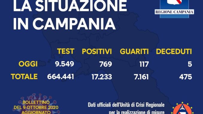 COVID-19, IL BOLLETTINO ORDINARIO DELL’UNITÀ DI CRISI DELLA REGIONE CAMPANIA