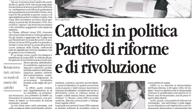 Oggi sul quotidiano del Sud, è stato un interessante articolo del prof. Franco Vittoria, che vi proponiamo, dal titolo “Cattolici in politica Partito di riforme e di rivoluzione. La fondazione dei Popolari di Sturzo fu l’avvenimento più notevole della storia italiana del XX secolo”.