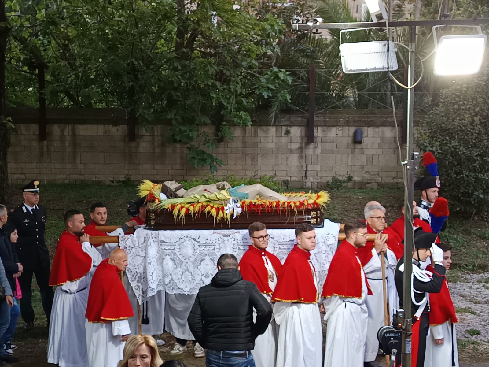 La giornata è iniziata all’alba, con l’arrivo dei pellegrini da Marzano di Nola, i noti “Marzanesi”, accolti come sempre con rispetto e affetto. Percorrendo le strade principali della cittadina, hanno intonato le antiche laude Sortium dies Domini, i “lamenti del Signore”, sostando in preghiera presso l’altare della reposizione nella Chiesa Parrocchiale. Il loro cammino si è poi concluso presso le Basiliche, dove hanno proseguito i riti prima di fare ritorno nel Vallo di Lauro.