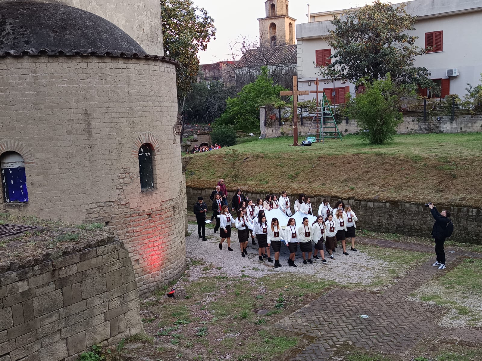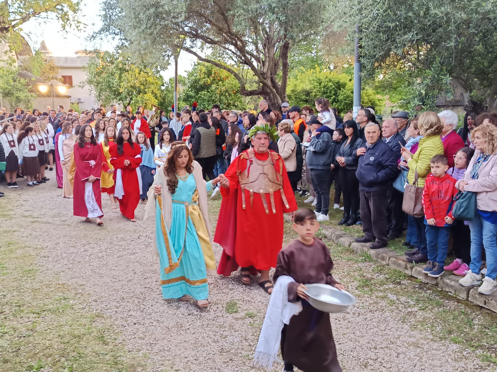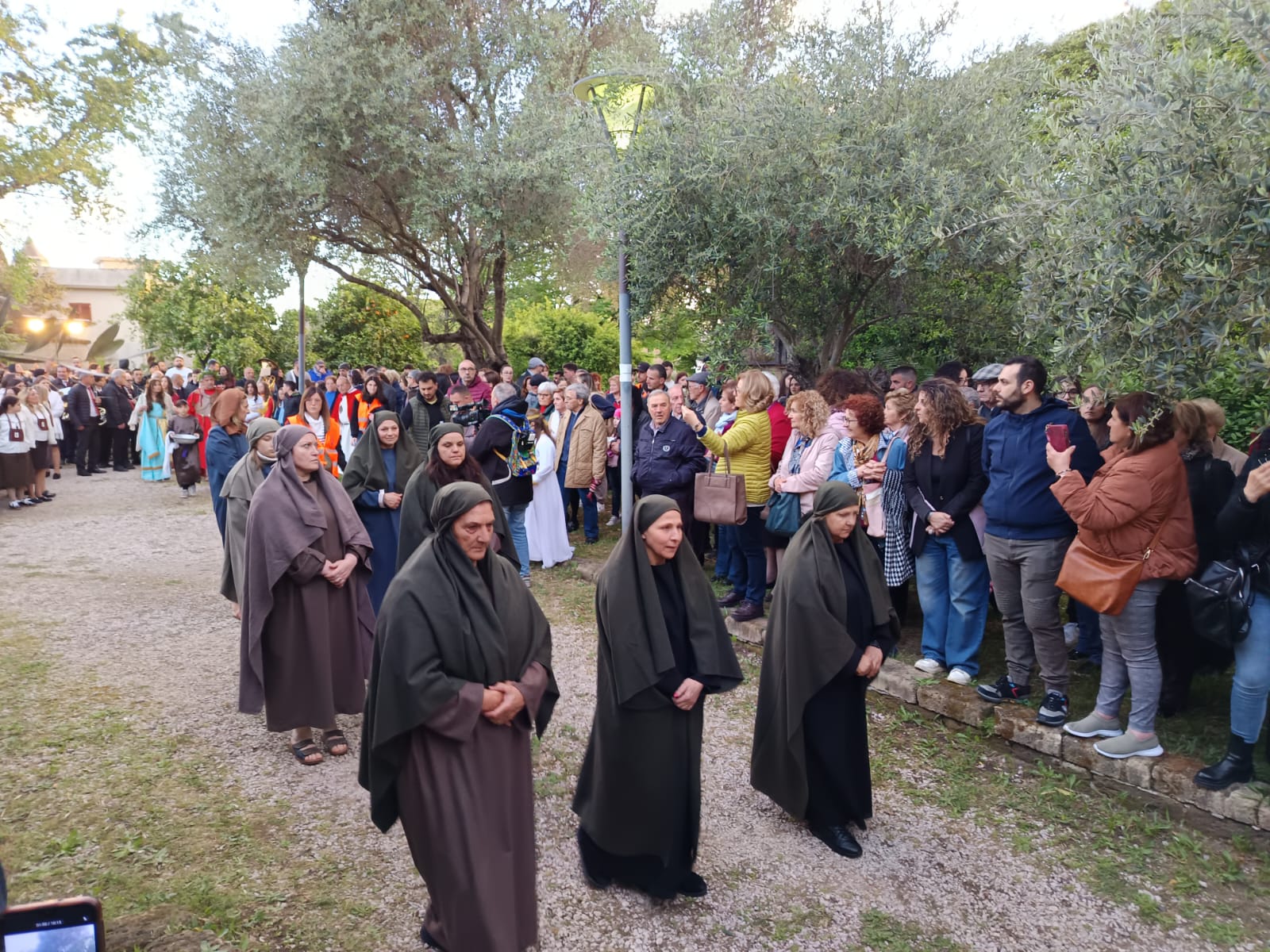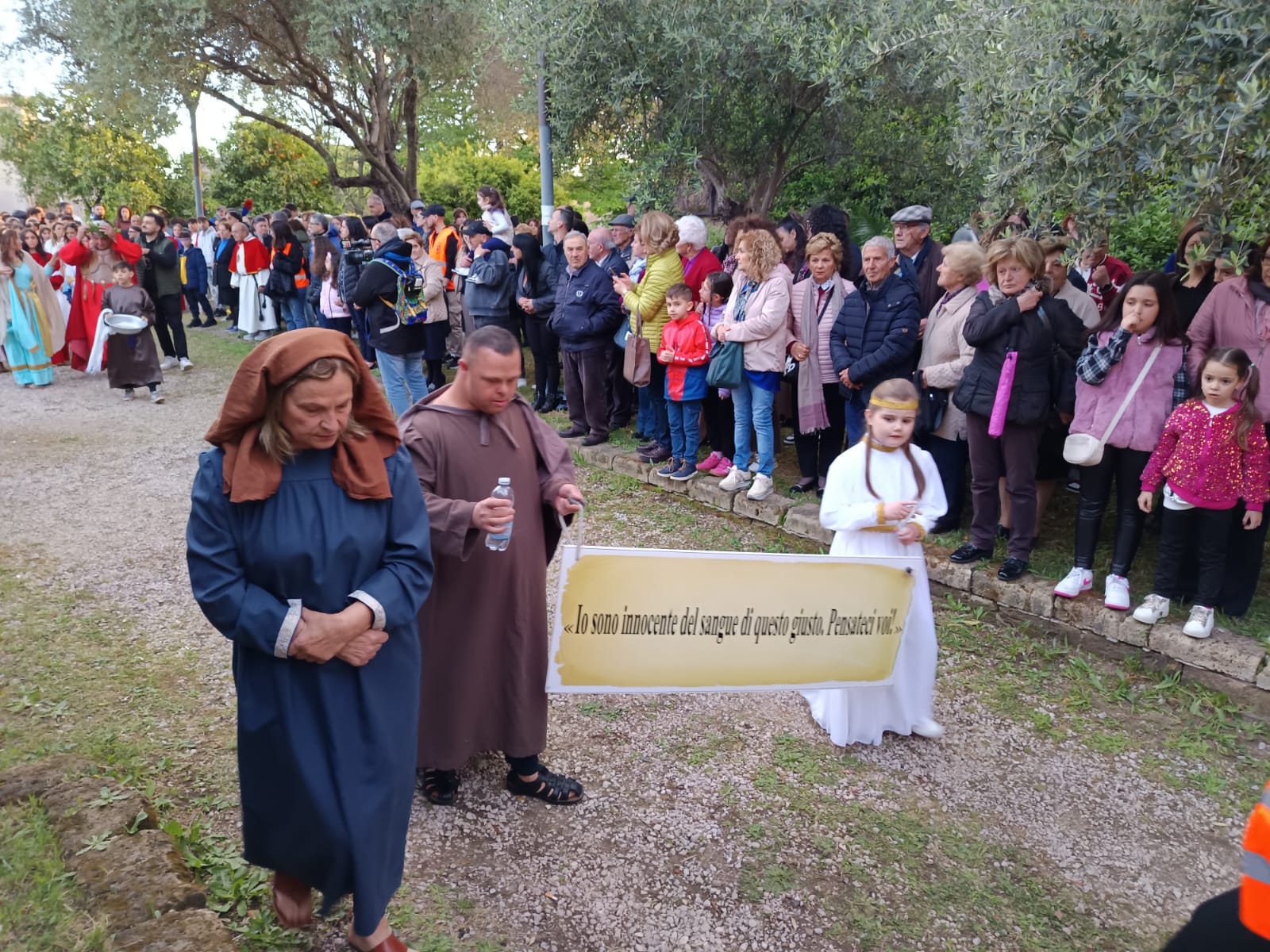 Nel pomeriggio, dopo l’azione liturgica in Parrocchia, alle ore 18:30 è partita la Via Crucis Vivente, con oltre duecento figuranti impegnati in una rappresentazione toccante e curata nei minimi dettagli. Lo spazio verde delle Basiliche si è trasformato in un autentico palcoscenico sacro, dove sono state ripercorse le quattordici stazioni della Passione di Cristo.