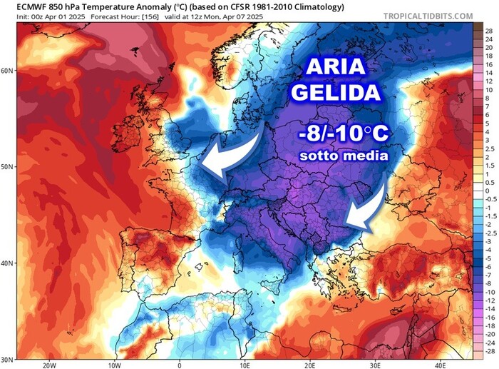 A partire dal 6-7 aprile, l’Italia e buona parte dell’Europa saranno interessate da un’imponente ondata di aria molto fredda proveniente direttamente dal Polo Nord. Si tratta di un’irruzione artica che porterà temperature fino a 8-10°C al di sotto delle medie climatiche di riferimento, segnando un vero e proprio ritorno dell’inverno nel pieno della primavera.