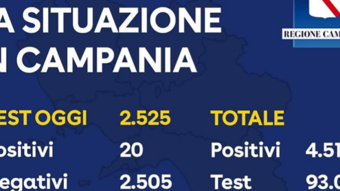 L’Unità di Crisi della Regione Campania comunica che sono pervenuti i seguenti dati: