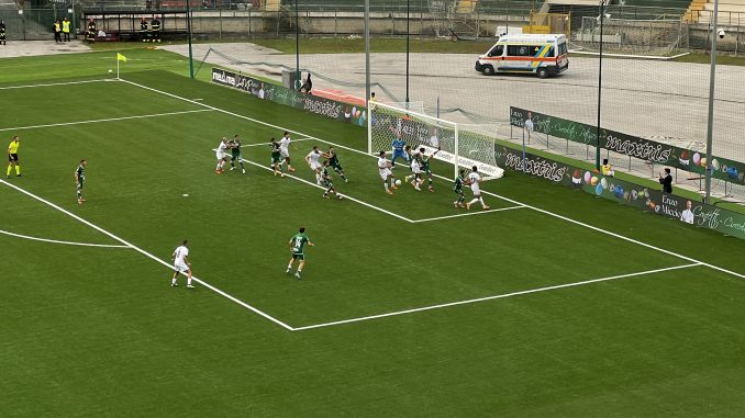 Nel finale di tempo episodio chiave: espulso Palmiero per un intervento a centrocampo giudicato da Perenzoni da rosso diretto. Decisione che ha lasciato perplesso il pubblico del “Partenio” e complicherà la ripresa dei biancoverdi, ora costretti a giocare in dieci uomini.