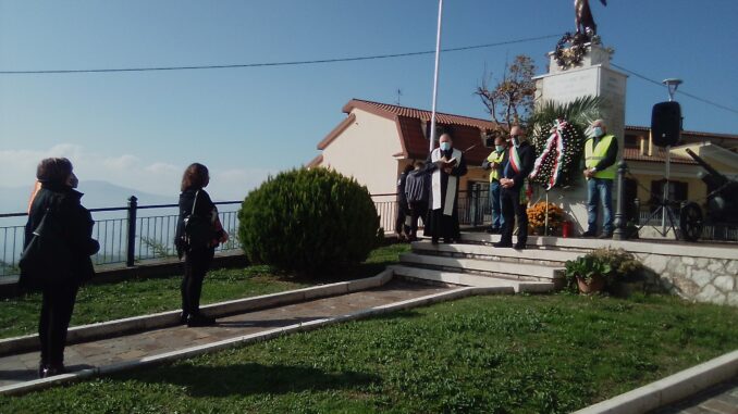 Nel suo intervento Lanza ” Oggi 4 novembre commemoriamo i nostri caduti di tutte le guerre davanti al monumento e lo facciamo nella maniera più sobria e soprattutto nella maniera consentita attualmente dalle norme in vigore. Siamo in pochi, ci mancano anche i bambini delle scuole, ma con il cuore ci sono essi e tutta la popolazione…… Voglio ricordare, che nessuna guerra è una guerra utile, nessuna guerra è positiva, ma tutte le guerre chiudono sempre con un saldo negativo, un saldo che purtroppo sono le vite umane…… Così come stiamo combattendo attualmente la guerra contro il coronavirus che ci vede impegnati contro un nemico invisibile. Le guerre nel tempo sono cambiate, sono appunto diventate guerre telematiche invece questa è una guerra contro il virus…… Ma, gia’ la parola guerra significa appunto avere qualcosa di negativo e la negatività in ogni guerra comporta sempre e soltanto perdita di vite umane. …..Rivolgo un appello a tutta la comunità di attenersi alle normative dei vari Dpcm e delle ordinanze emanate di volta in volta dalle autorità competenti… Come indossare sempre la mascherina, evitare assembramenti, rispettare il distanziamento sociale ed evitare festeggiamenti colletivi” . Ha concluso leggendo dalla lapide del monumento i nomi, uno per uno, dei caduti di tutte le guerre.