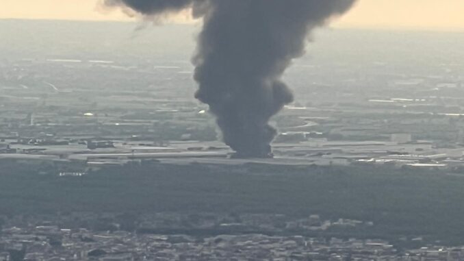Nola (NA) – Un vasto incendio è divampato oggi nella zona industriale nolana esattamente al CIS di Nola e l’area commerciale di Boscofangone. Una densa colonna di fumo nero è visibile da chilometri di distanza, destando preoccupazione tra i residenti e i lavoratori della zona.