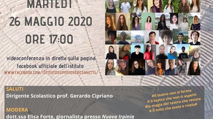 Il laboratorio del dramma antico dell’I.I.S.S. Francesco De Sanctis di Sant’Angelo dei Lombardi rinvia la prima teatrale dello spettacolo dal titolo “Verso Colono” dalla tragedia di “Edipo Re” di Sofocle ma propone un originalissimo lavoro, costruito attraverso la didattica a distanza, per raccontare la pandemia attraverso gli occhi dei ragazzi, che hanno avuto la possibilità di mettere in campo una autentica sperimentazione dei nuovi codici comunicativi, per enfatizzare il messaggio di Edipo e porre l’accento- alla luce della pandemia e del lockdown imposto dal Coronavirus- sulla necessità di ritrovarsi nella solidarietà collettiva per ricostruire un nuovo tessuto sociale. Il video interamente realizzato e montato dai ragazzi è presente sulla pagina social dell’Istituto De Sanctis e in pochi giorni ha incassato centinaia di ovazioni anche da accademici e critici letterari di tutta Italia. Ad apprezzare il lavoro svolto da docenti e alunni è stata anche la Ministra Lucia Azzolina, che raggiunta dalla professoressa Maria Marandino, non ha esitato a far recapitare i suoi personali apprezzamenti di seguito riportati: