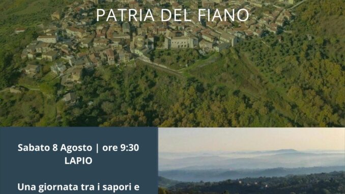 LAPIO, la patria del Fiano. Ecco la giornata tra sapori e le bellezze di questo luogo 30/07/2020 binews.it ATTUALITA', CULTURA e MANIFESTAZIONI, EVIDENZA, IRPINIA, Uncategorized, Vini, Sapori & dintorni -Rubrica enogastronomica a cura di Carmen Guerriero 0 Si terrà sabato 8 agosto a partire dalle 9,30 la manifestazione dal titolo: “Una giornata tra sapori e le bellezze di questo luogo”, il tutto a Lapio, patria del Fiano. Ecco il programma