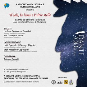 Il 23 ottobre alle ore 16.30, nella sala consiliare del palazzo comunale di Marigliano si terrà un incontro interamente dedicato a Dante Alighieri, attraverso il contributo di due autorevoli ospiti: il Conte Sperello di Serego Alighieri, astrofisico e discendente di Dante e il prof. Massimo Capaccioli, già docente di astrofisica e astronomia presso le Università di Padova e di Napoli.