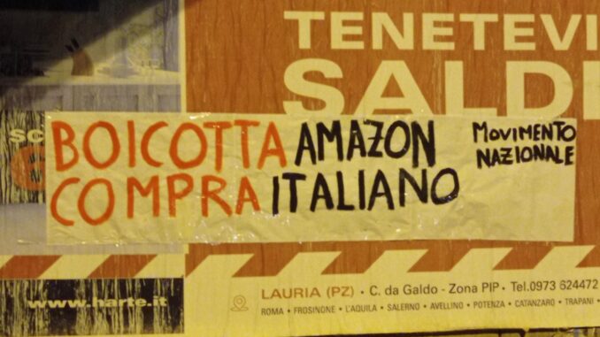 Si tratta di Amazon, la multinazionale americana che più di tutte ha tratto vantaggio dal coronavirus e dal lockdown. Un nome diventato un simbolo di efficienza e velocità, che cela dietro di sé una realtà di neo-schiavismo alienante e robotizzato. Il modello Amazon è fondato sulla concorrenza sleale, sull’elusione fiscale, sulla standardizzazione al ribasso e sulla devastazione del nostro tessuto produttivo e delle nostre PMI.