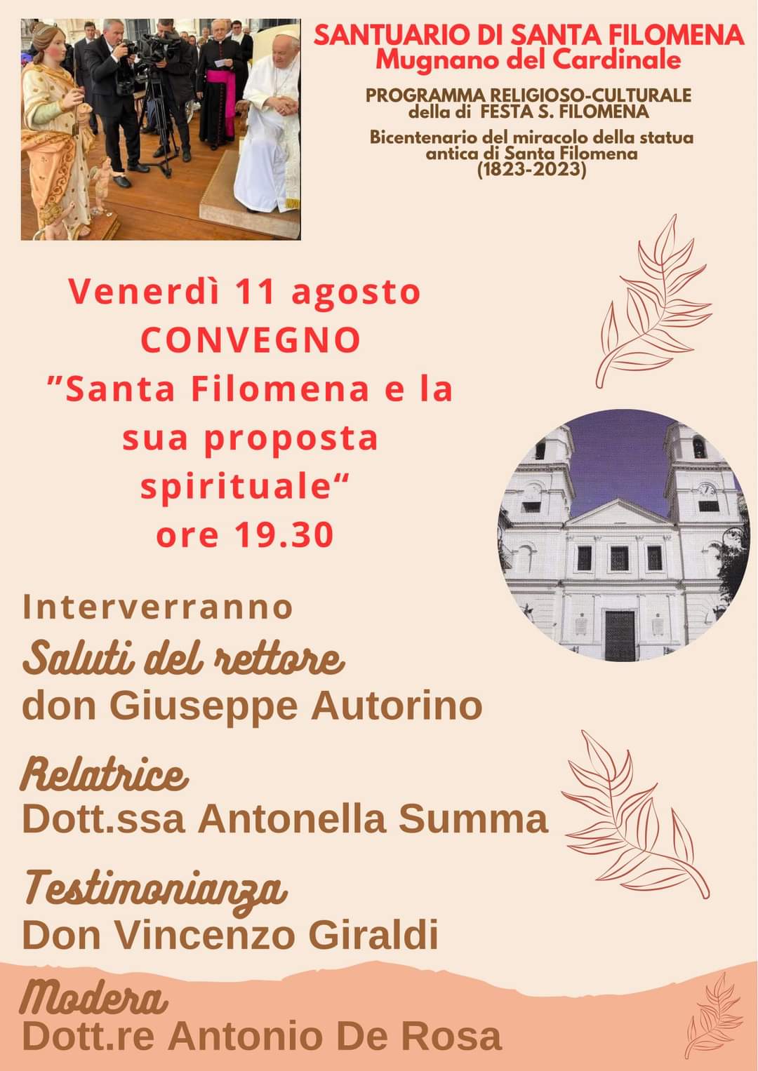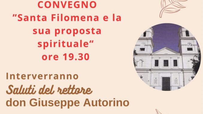 Giovedì 11 agosto, alle ore 19.30 si terrà il convegno sul Bicentenario del miracolo della statua di Santa Filomena “Filomena e la sua proposta spirituale”.