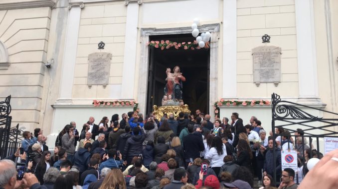 La statua lignea di Maria Santissima delle Grazie, opera di Colombo, è ritornata in paese dopo il restauro durato alcuni mesi. I mugnanesi hanno iniziato ad affollare la zona intorno alla farmacia già verso le 17 infatti lì nel parcheggio è stata adornata la Madonna e aperte le tende rosa, installate all’ingresso del parcheggio, è stata mostrata al popolo la Mamma Celeste. Il restauro ha permesso il recupero dei colori originari della Statua. Le migliaia di persone presenti hanno applaudito a lungo al passaggio del corteo religioso che ha attraversato viale De Lucia e si è concluso con il ritorno nel Santuario della Madonna.