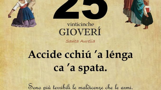 ‘O PRUVERBIO D’ ‘O JUORNO. Giovedì 25 settembre 2025 25/09/2025 binews.it EVIDENZA, Il Proverbio del Giorno, Uncategorized 0 di Gianni Polverino Accide cchiú ’a lénga ca ’a spata. Sono più terribili le maldicenze che le armi.