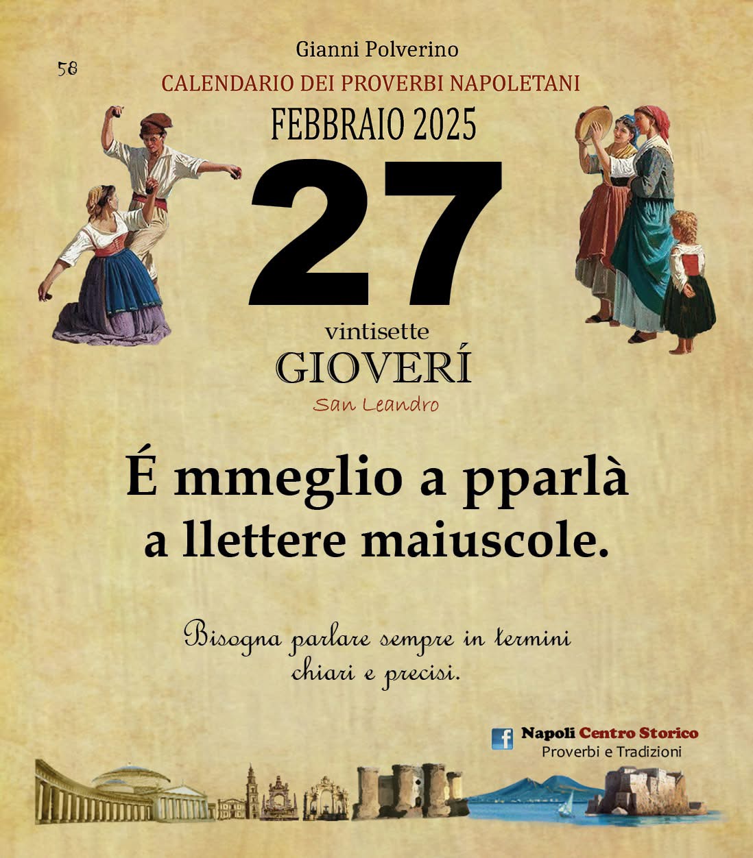 ‘O PRUVERBIO D’ ‘O JUORNO. Giovedì 27 febbraio 2025
