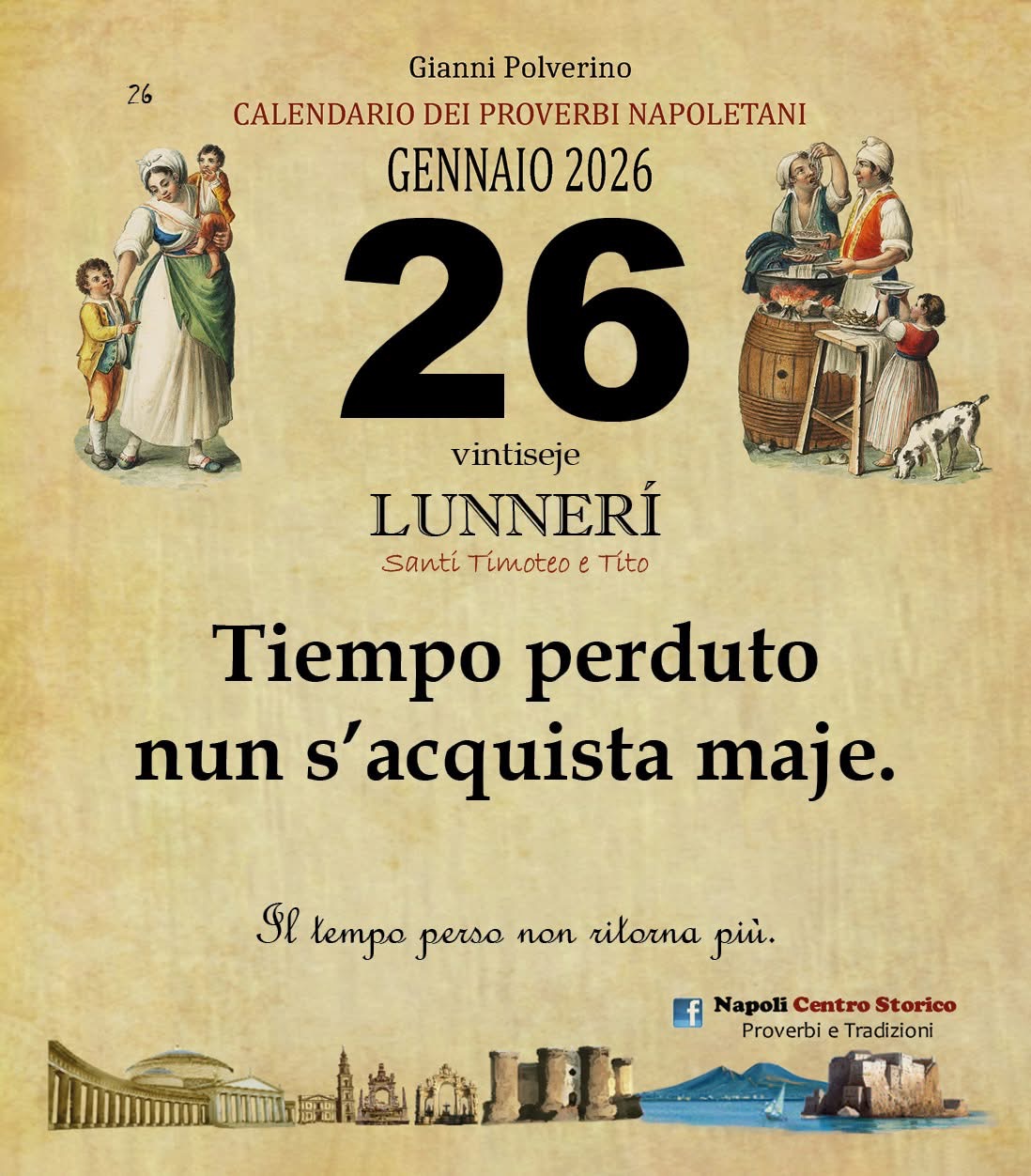 • ‘O PRUVERBIO D’ ‘O JUORNO. Lunedì 26 gennaio 2026