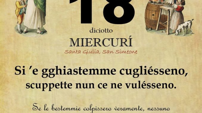 ‘O PRUVERBIO D’ ‘O JUORNO. Mercoledì 18 febbraio 2026 18/02/2026 binews.it EVIDENZA, Il Proverbio del Giorno, Uncategorized 0 di Gianni Polverino Si ’e gghiastemme cugliésseno, scuppette nun ce ne vulésseno. Se le bestemmie colpissero veramente, nessuno comprerebbe più i fucili.