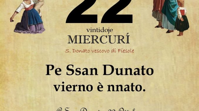 ‘O PRUVERBIO D’ ‘O JUORNO. Mercoledì 22 ottobre 2025 22/10/2025 binews.it EVIDENZA, Il Proverbio del Giorno, Uncategorized 0 di Gianni PolverinoPe Ssan Dunato vierno è nnato. A San Donato, 22 Ottobre, l’inverno è ormai alle porte.