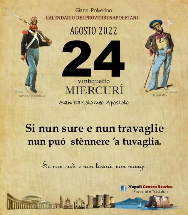 ‘O PRUVERBIO D’ ‘O JUORNO. Mercoledì 24 agosto 2022