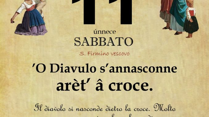 ‘O PRUVERBIO D’ ‘O JUORNO. Sabato 11 ottobre 2025 11/10/2025 binews.it EVIDENZA, Il Proverbio del Giorno, Uncategorized 0 di Gianni Polverino’O Diavulo s’annasconne arèt’ â croce.Il diavolo si nasconde dietro la croce. Molto spesso sono proprio coloro che predicano Cristo ad essere i più peccaminosi.