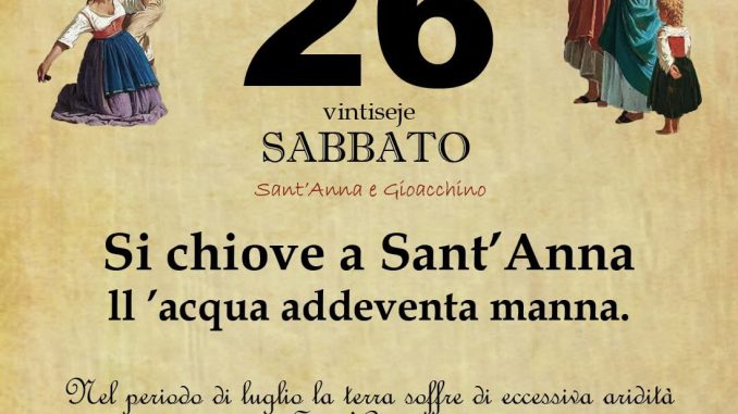 Nel periodo di luglio la terra soffre di eccessiva aridità e la pioggia a Sant’Anna fa bene ai campi.O PRUVERBIO D O JUORNO. Sabato 26 luglio 2025