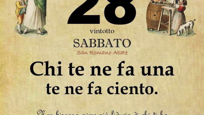 ‘O PRUVERBIO D’ ‘O JUORNO. Sabato 28 febbraio 2026 28/02/2026 binews.it EVIDENZA, Il Proverbio del Giorno, Uncategorized 0 di Gianni PolverinoChi te ne fa una te ne fa ciento. Non bisogna avere più fiducia di chi ti ha fatto una cattiva azione.