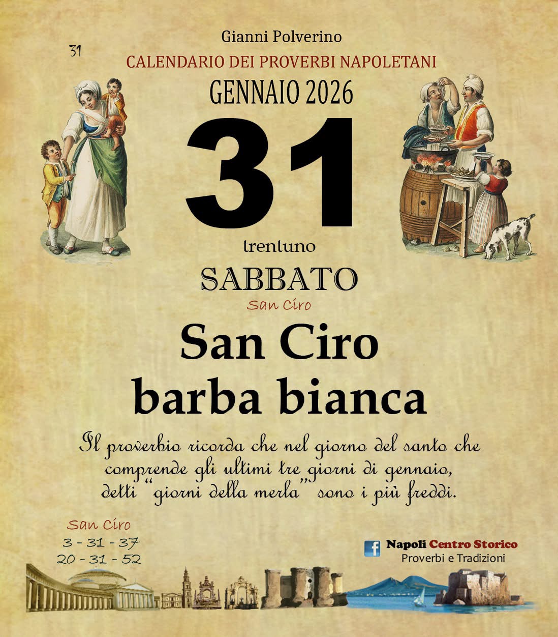 ‘O PRUVERBIO D’ ‘O JUORNO. Sabato 31 gennaio 2026