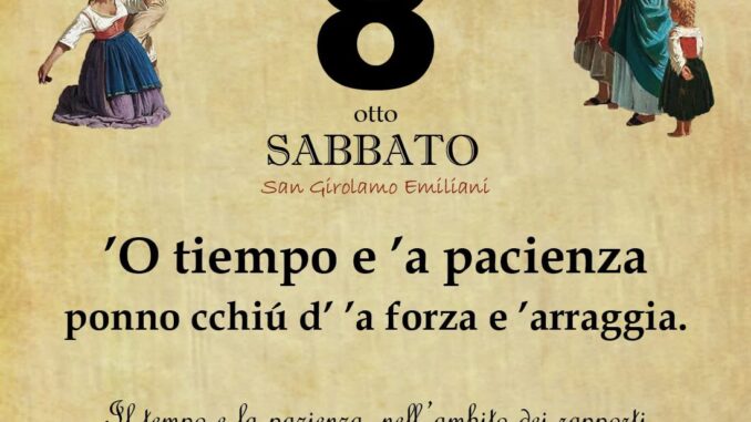 ‘O PRUVERBIO D’ ‘O JUORNO. Sabato 8 febbraio 2025 08/02/2025 binews.it Uncategorized 0 di Gianni Polverino ’O tiempo e ’a pacienza ponno cchiú d’ ’a forza e ’arraggia. Il tempo e la pazienza, nell’ambito dei rapporti umani e sociali, possono più della forza e la rabbia.
